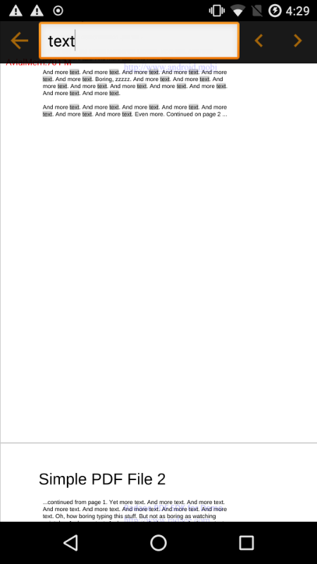 Is there any direct method for showing highlighted search text as you scroll through the document? I am able to display search results in 1 page using PDFFindStart() and PDFFind(), but if I scroll down, the search results are NOT highlighted in the next page (see image attached -- "text" is highlighted in first page but not second one). I would like to load search results as the user scrolls to the next pages.