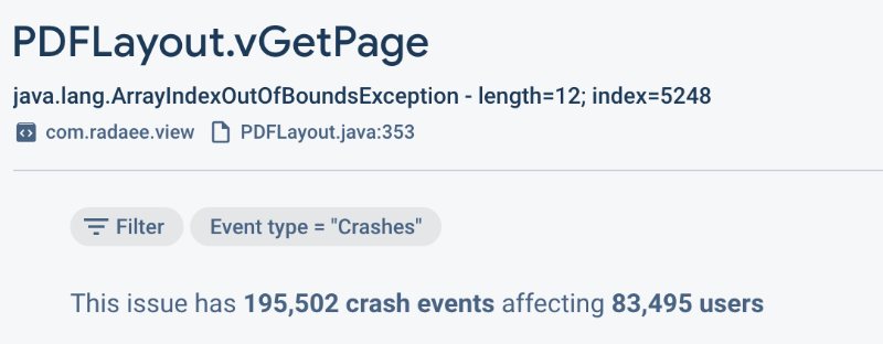 We've noticed that there is a problem with RadaeePDF Master for Android 1.2.28. We integrated SDK in our app and it seems that after updating to RadaeePDF Master it started crashing quite often.