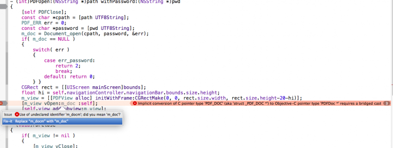 [m_view vOpen:m_doc: self]; in this method - (int)PDFOpen:(NSString *)path withPassword:(NSString *)pwd.i have attach screeshot with that.