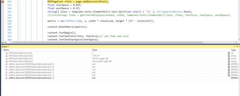 PDFDocFont dfont = mDocGenerator.NewFontCID(PDFGlobal.GetFaceName(1),