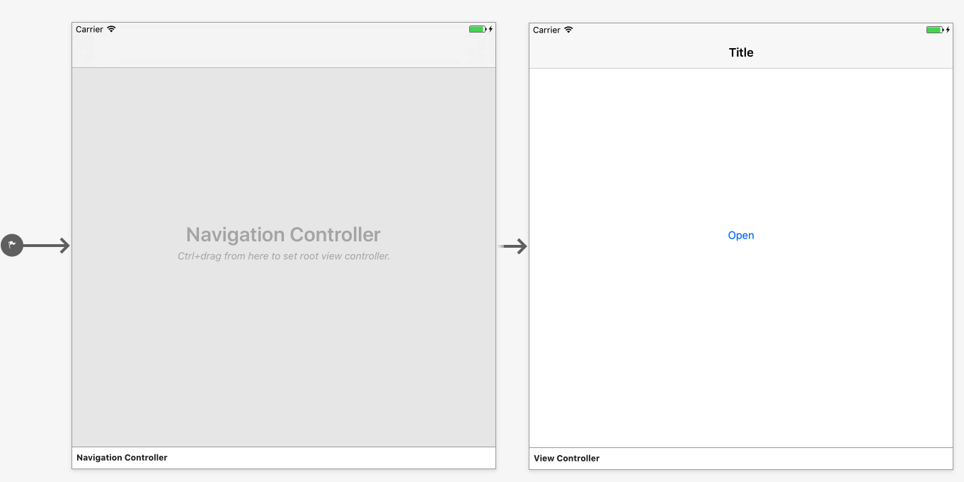 9. Open TestRadaee->Main.storyboard, and add a navigation controller and abutton to open a pdf file: