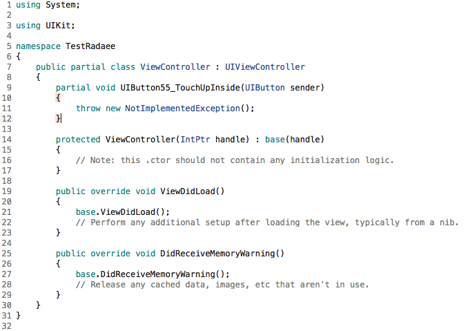 15. Now ViewController.cs should be something like: